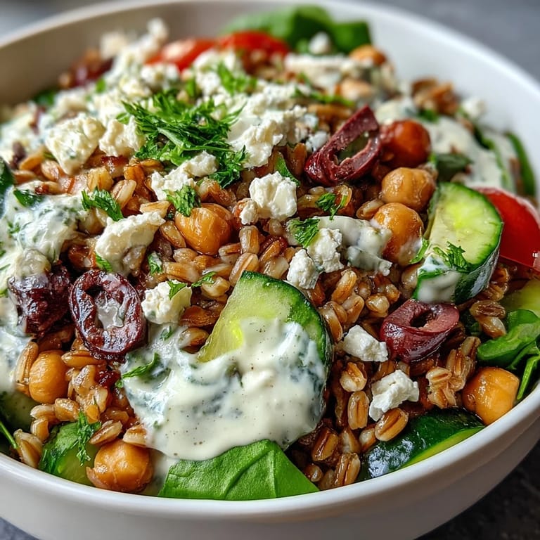 - Divide among serving bowls, top each with crumbled feta and a scatter of fresh parsley, then serve immediately while the farro is still warm and the vegetables are still crisp. The warmth of the farro combined with cold vegetables and creamy dressing creates a temperature contrast that makes eating it feel intentional and special.